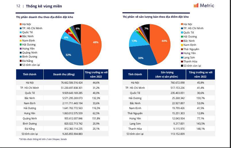 3 ngành hàng đứng đầu về doanh thu và số lượng bán gồm Làm đẹp, Nhà cửa - Đời sống và Thời trang nữ. Đây đều là những ngành hàng có sản phẩm có vòng đời ngắn và tỉ lệ mua lại cao. Top 10 doanh nghiệp có doanh thu cao nhất hiện nay trên tổng 5 sàn TMĐT đều là những Shop Mall, tập trung ở 2 ngành hàng chính là làm Đẹp và Điện thoại, Máy tính bảng.